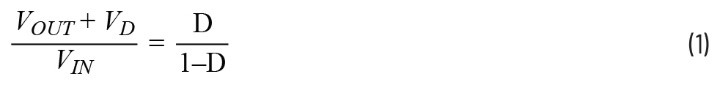单端初级电感转换器(SEPIC)拓扑结构允许输入高于、等于或低于目标输出电压(图1)。公式1显示了连续导通模式(CCM)下转换率与占空比的函数关系。