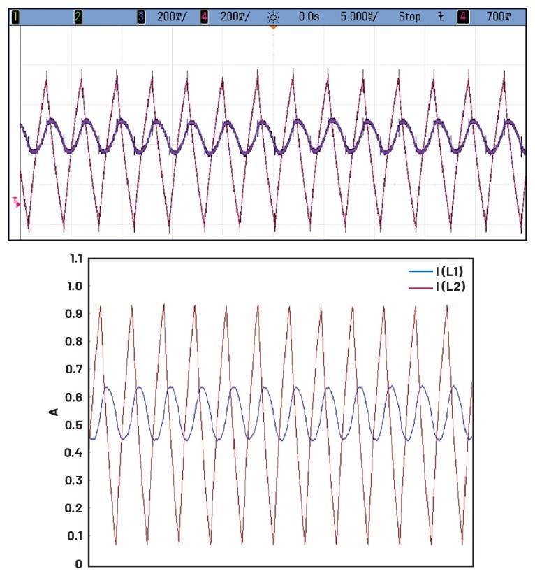 虽然耦合电感的性能更出色,但LTspice®中的仿真电感电流波形并不总是与基准结果匹配。这主要是由于耦合电感模型不准确造成的。