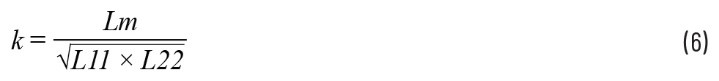 在本示例中,测得的L11为46.66 µH,L22为45.78 µH,L1K11为0.725 µH。计算得出Lm为45.857 µH。计算得出K为0.992。