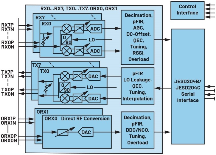 图1.ADI 16 nm收发器的功能框图。