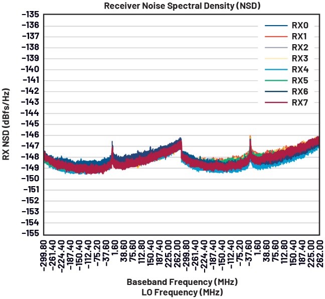 此外,零中频接收器的NSD通常与频段无关。如图5所示,6300 MHz和7100 MHz时的NSD几乎相同。
