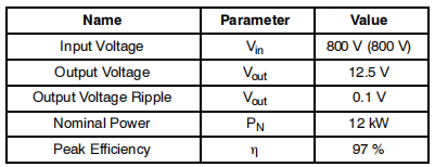 采用sC和1pC的高压IBC系统将拆分为两个转换器,各承担一半标称功率(每台6kW)。此举旨在将原边RMS电流降至可控水平(详见下面转换器物料清单章节)。3pC方案将通过一台12kW转换器实现。