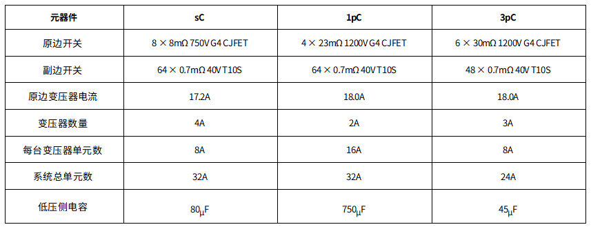 尽管1pC所需的原边器件数量最少,但整体器件总数最少的方案却是3pC。这得益于三相拓扑固有的较低RMS电流特性,不仅减少了副边器件数量,也简化了变压器设计。