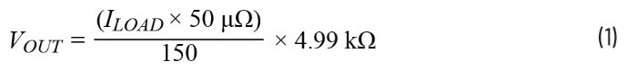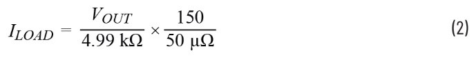 为了避免使用大电流评估电路的性能,可以将50 µΩ分流电阻替换为1 Ω精密电阻。这样一来,电路依旧能够产生相同的输出电压,但负载电阻提升了20,000倍。此外,由于使用大值负载电阻,测试引线的阻抗就不会影响电阻读数。负载电阻两端的电压和负载的阻值均可利用标准万用表测量,由此可以高精度地计算负载电流。