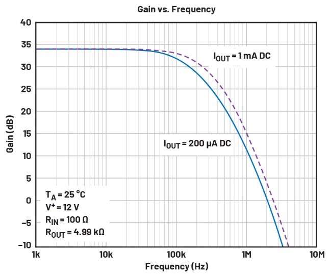 图4.LTC6102的增益与频率的关系