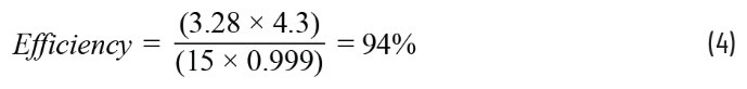 基于已知数值和测得的输出电压3.28 V,可以计算LTC3891的效率,如公式4所示。