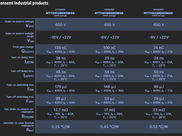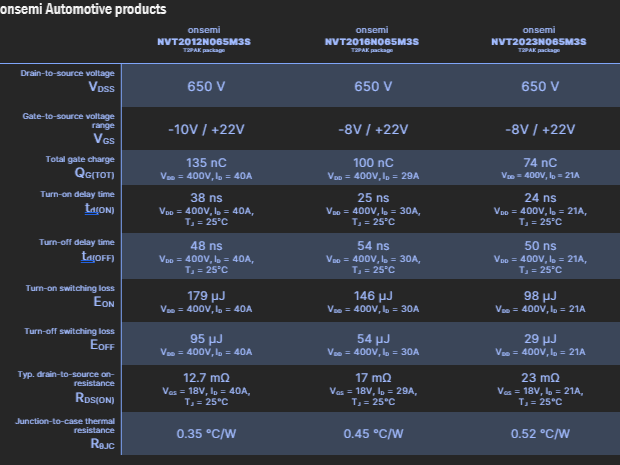 图 2:安森美T2PAK封装EliteSiC M3S系列MOSFET的规格参数