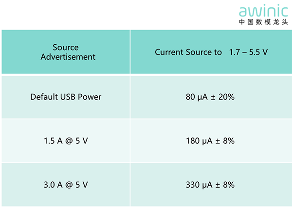 当端口被配置为DRP 模式后,AW35613将会持续监测连接到PD Controller端的CC端口电平,并关闭MPASS管,使用芯片内部2μA左右电流镜作用于端口CC pin,进而达到探测设备插入事件的作用。