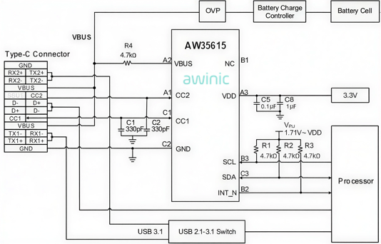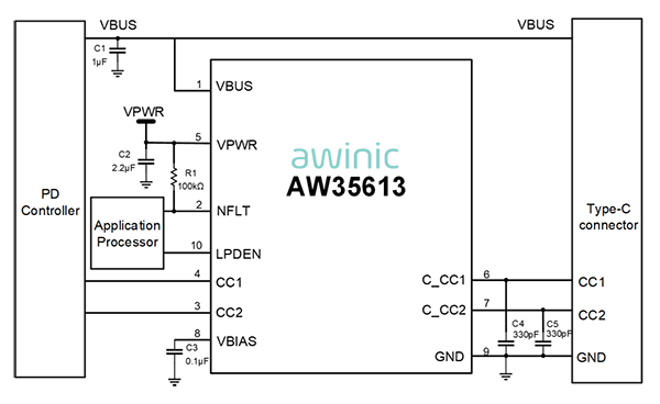 方案一 : AW35615基于PD PHY的CC端口解决方案