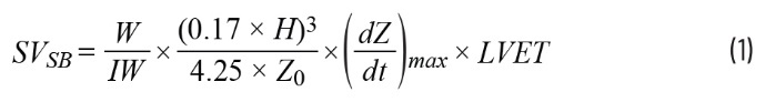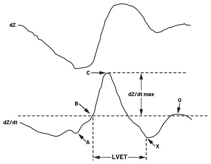 (dZ/dt)max是ICG信号的峰值幅度。LVET代表左心室射血时间。Z₀是身体组织的基线阻抗。