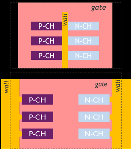 第三,一个标准单元内的n和p器件的栅极现在可以轻松连接,而无需穿越绝缘壁。