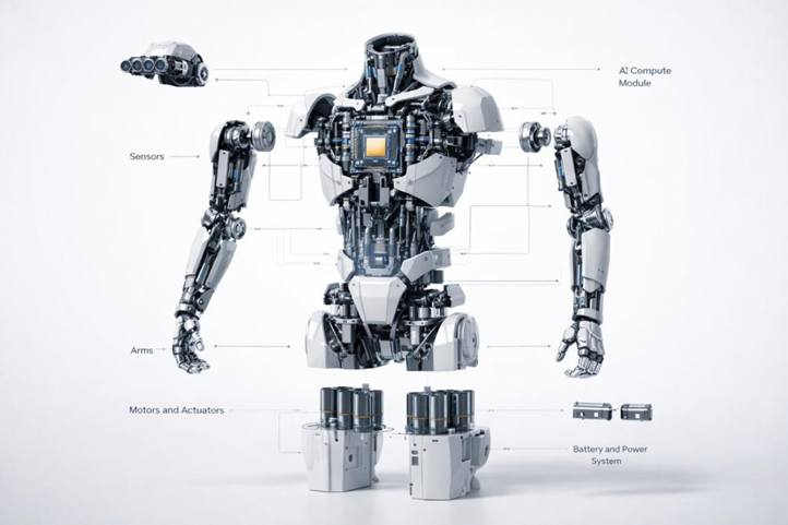 人形机器人本质上是一套高度耦合的复杂系统,涵盖感知、决策、执行及供电等多个关键环节。从多模态传感器的数据采集,到AI芯片与高速互联链路的数据处理,再到电机驱动系统的动作执行,以及电池与电源系统的能量供给,每一个环节都高度关联。