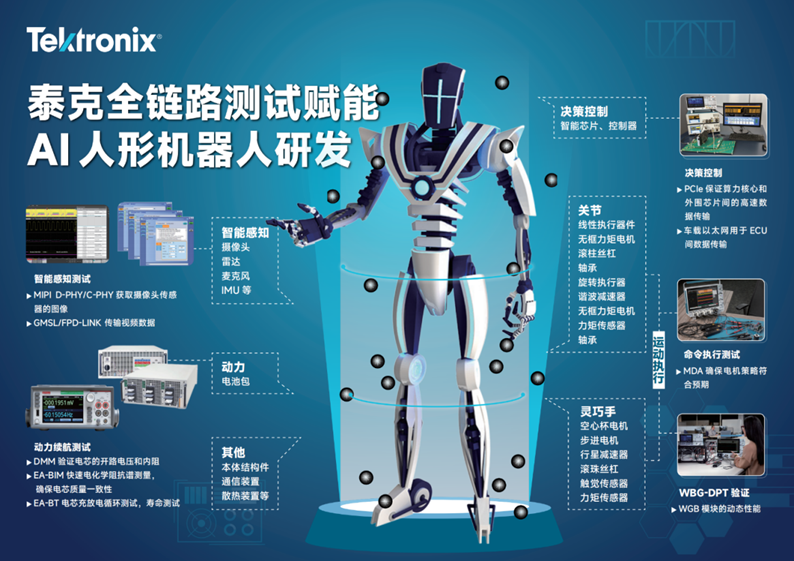 在这一背景下,泰克作为相关的测试测量厂商,正围绕机器人核心架构构建系统化测试能力: