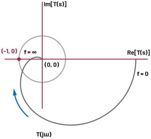 图1.稳定的负反馈线性系统(电源)的典型奈奎斯特图。