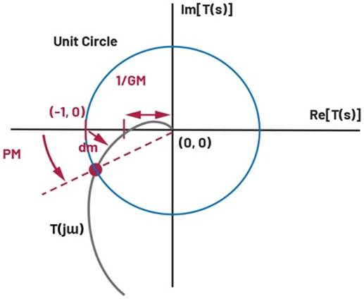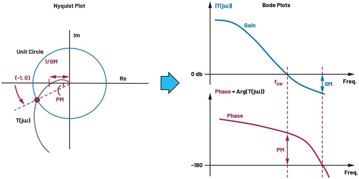 图2.奈奎斯特图上的稳定性裕量(相位裕量(PM)和增益裕量(PM))。
