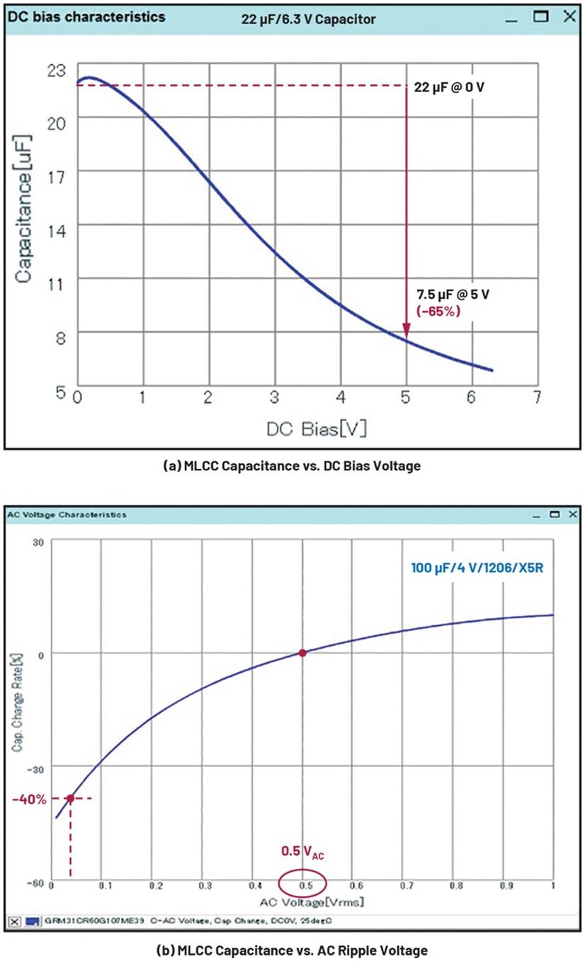 由于外部组件值不准确且存在差异,针对环路波特图建模可能是不错的起点,但可能不太准确。最主要的差异通常来自输出电容网络。如图7所示,高容值多层陶瓷电容(MLCC)的值会随直流偏置电压或交流纹波电压而显著变化,导致产生40%至~60%的电容值误差。LTpowerCAD电容库中考虑了直流偏置变化,但尚未考虑交流偏置变化。另一种常用的电容类型是导电聚合物电容。它们提供高容值,但相比MLCC,其寄生ESR电阻值也更高。遗憾的是,典型的数据手册中提供的聚合物电容的ESR值可能不准确。更糟糕的是,许多聚合物电容对潮湿环境敏感(MSL3)。如果未将器件保存在密封且干燥的包装袋中,ESR值会随时间发生很大变化。