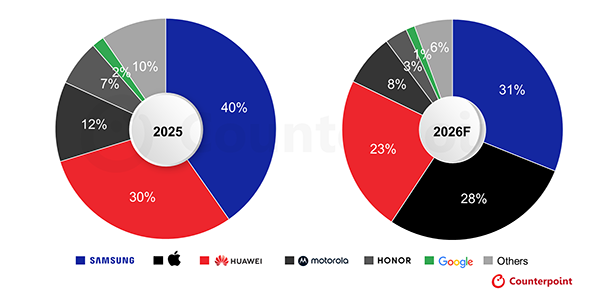Counterpoint Research表示,尽管到2025年折叠屏手机仅占智能手机市场整体的1.6%,但随着厂商寻求利润空间可观的机型来抵消入门级和中端市场的价格压力,折叠屏手机对厂商而言正变得日益重要。