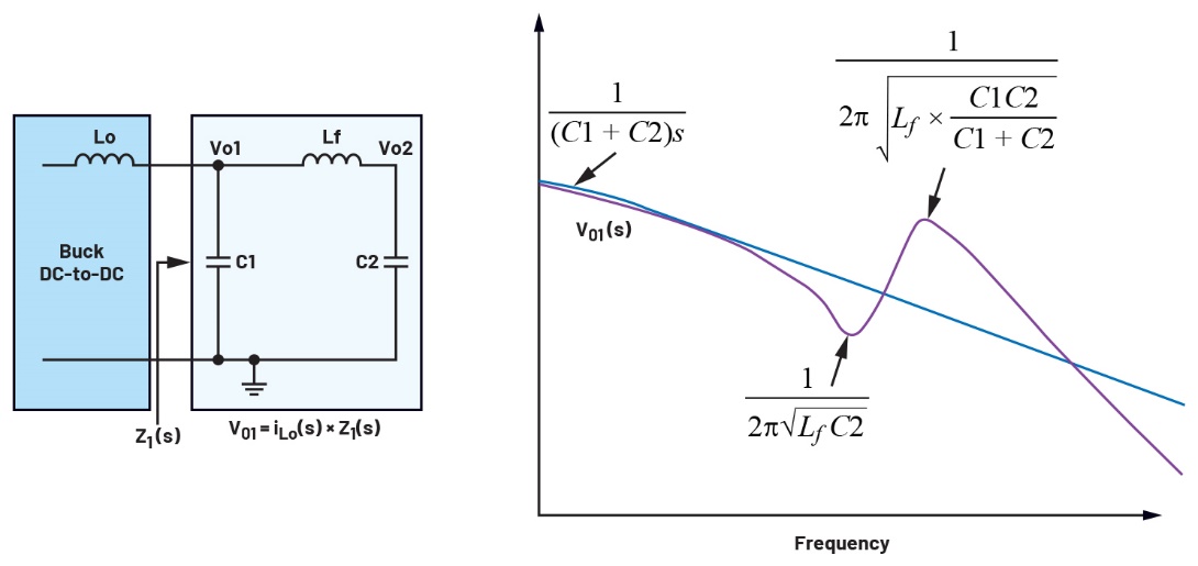 图8.从电源本地输出侧进行输出电容和L/C网络阻抗Z1(s)分析。
