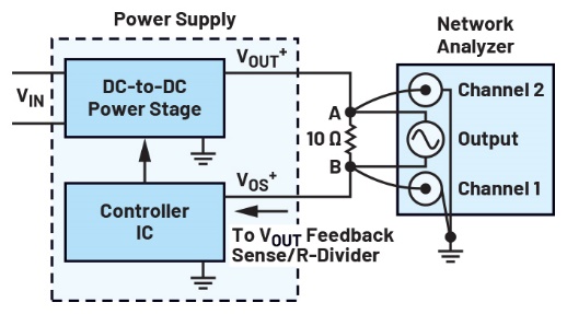 图3.标准电源反馈环路波特图测试设置。