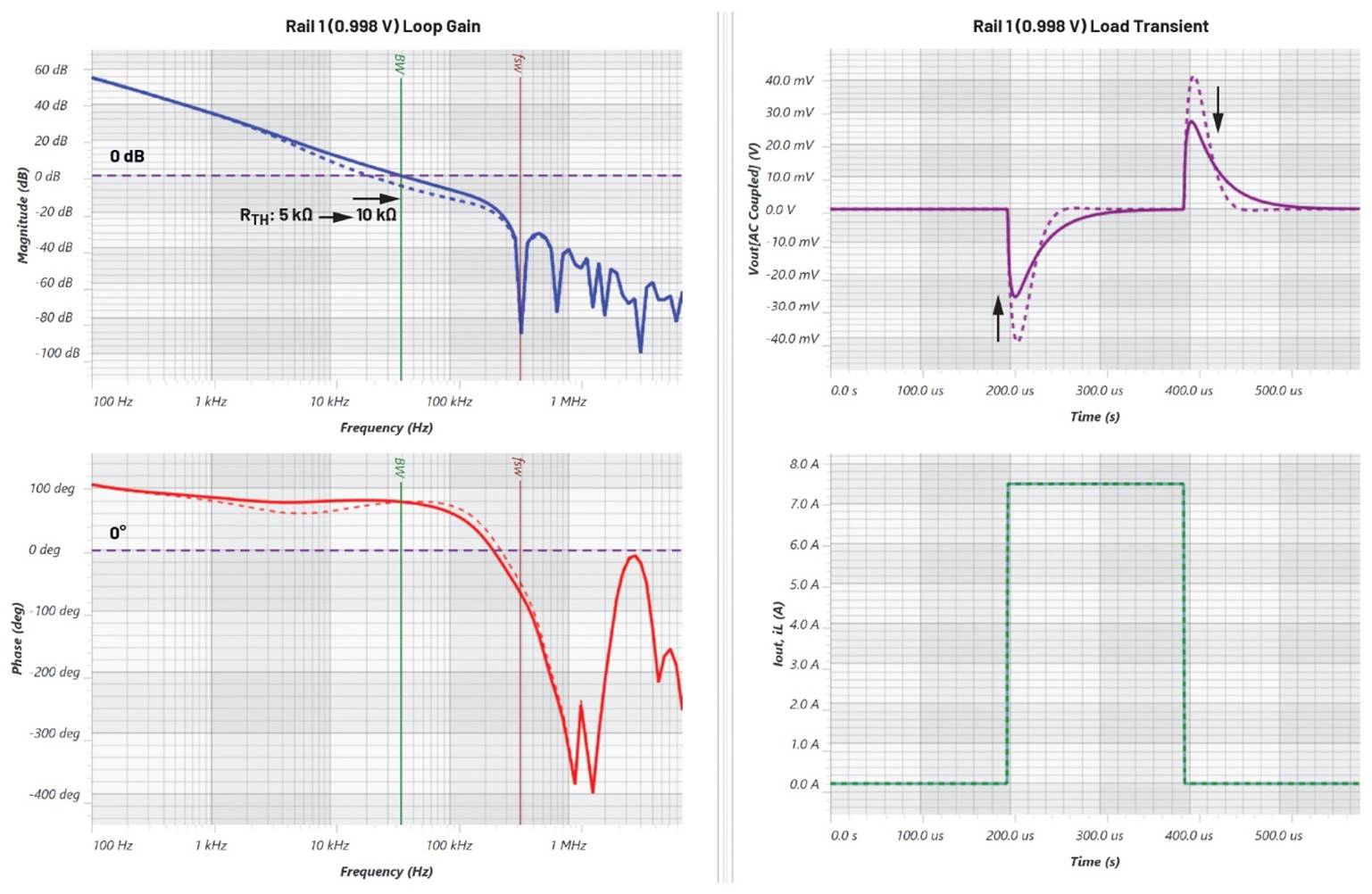 图6.增加RTH会提高电源环路带宽,从而降低负载瞬变期间的VOUT下冲和过冲。