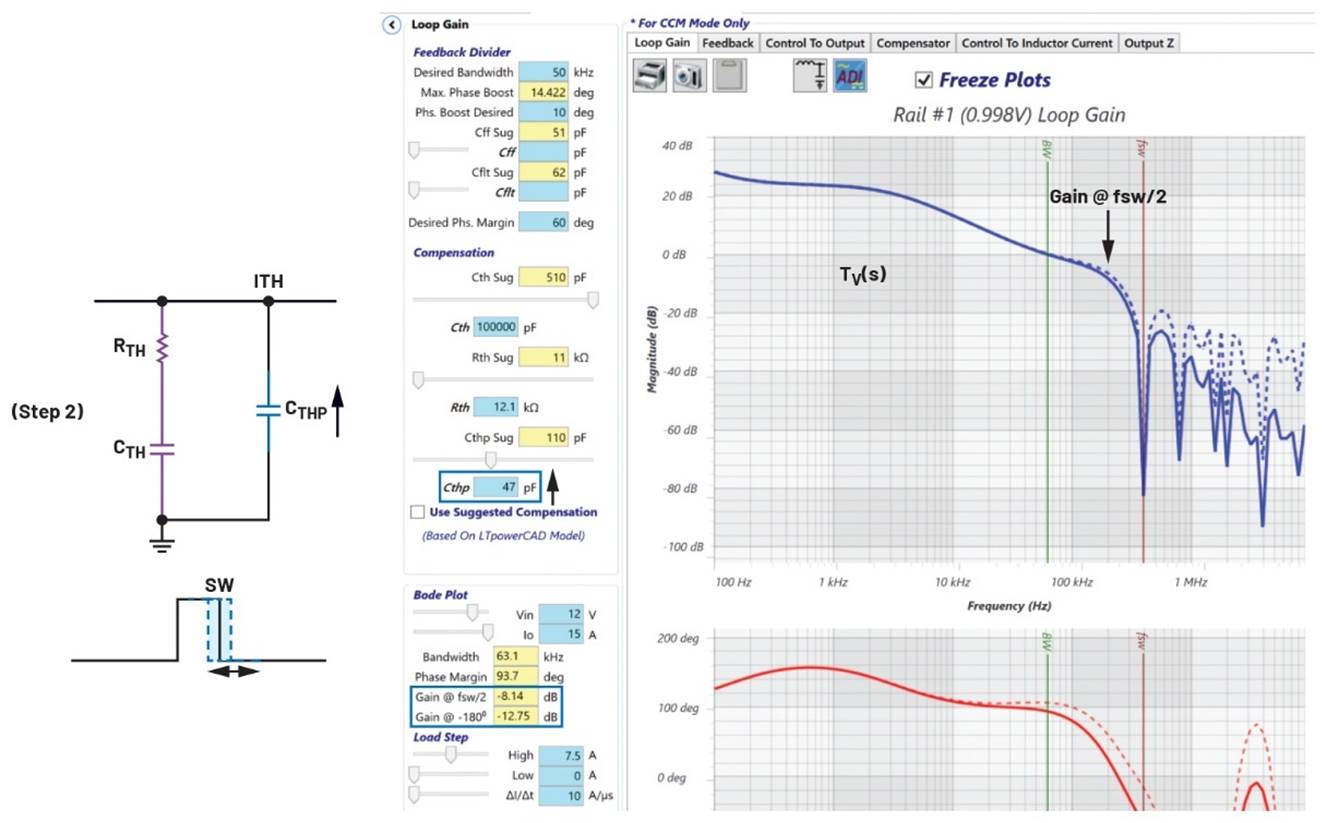 图12.环路设计第2步:CTHP从0开始增加,直到在fSW/2处实现8 dB的环路增益衰减。