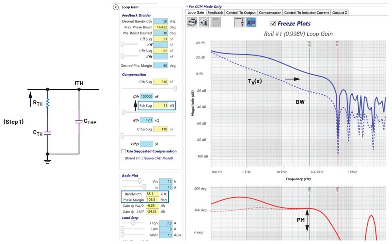 图11.环路设计第1步:预设一个较大的CTH值,然后从小到大增加RTH,直至达到目标电源带宽。