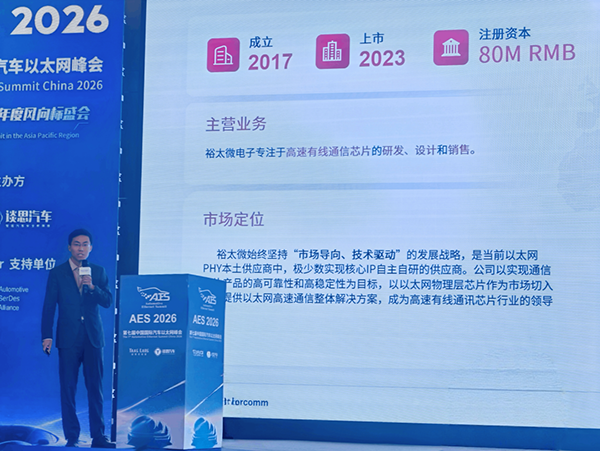 近日,第七届中国国际汽车以太网峰会(AES 2026)盛大召开。该峰会由谈思实验室和谈思汽车主办,是OPEN Alliance 与 SerDes 联盟在亚太区唯一联合支持的、全球汽车以太网两大盛会之一。TSN(时间敏感网络)协议在智能汽车中的核心价值与演进方向,并展示了公司“PHY+Switch+SerDes”全栈式车载高速有线通信解决方案。