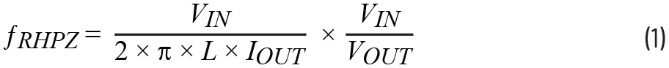 目标是设计一个电路,其VIN范围为6 V至18 V,VOUT为13 V,负载为2.5 A,需尽量减少输出电容,而且要使VOUT pp在±5%以内。若要将输出电容最小化,可先选择2.1 MHz的开关频率。在2.1 MHz频率下,电感值通常选用1 µH。VOUT限值允许650 mV的瞬态波动。为估算所需的输出电容,首先需考虑最坏情况的VIN,这种情况会使电路处于升压区域。在升压区域中,RHPZ可通过公式1计算。