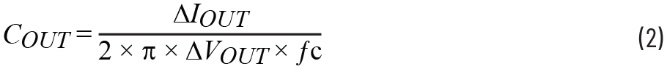 通过求解RHPZ并将其除以5,可将升压区域的交越频率设定为35 kHz。输出电容可通过公式2进行估算。