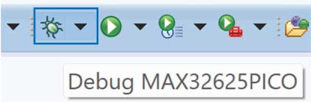 要配置第二个编程器PICO,请在zip文件中找到DAPLink Interface Binary目录,并定位其中的二进制文件。断开第二个编程器PICO与USB端口的连接,然后按住编程器PICO上的按钮,同时将其重新插入USB端口。如前所述,此时应该出现一个名为MAINTENANCE的驱动器。将DAPLink Interface Binary目录下的二进制文件(max32625_max32625pico_if_crc.bin)拖到MAINTENANCE驱动器。这将使用接口软件配置编程器PICO,并允许使用Eclipse单步执行目标代码。完成上述操作后,MAINTENANCE驱动器应该消失,编程器PICO将重新启动,并会出现一个DAPLINK驱动器。在此阶段,建议将编程线缆连接到编程器PICO,以将其与目标PICO区分开来。