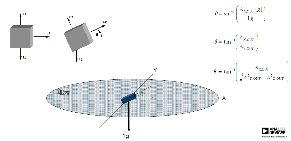 如下图:使用加速度传感器测量倾角的原理很简单。X轴在垂直方向的投影值就是X传感器的加速度值。Xout = 1g * Sin(ɸ), ɸ = arcsin(Xout). 但是在实际测量中,地球上每个地区的加速度存在一定的偏差,如果我们再辅助Z轴的信息, Zout = 1g * cos(ɸ), ɸ = arctan(Xout/Zout). 就可以消除加速度差异引起的误差。实际角度测量过程中,会受到温度漂移、振动整流误差、初始误差等因素的影响,造成测量角度误差。