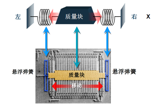 加速度计通过测量内部差分电容的变化来反映质量块的移动距离X